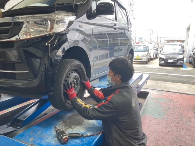 当店の国家整備士より、タイヤの交換作業をさせて頂きます。 |